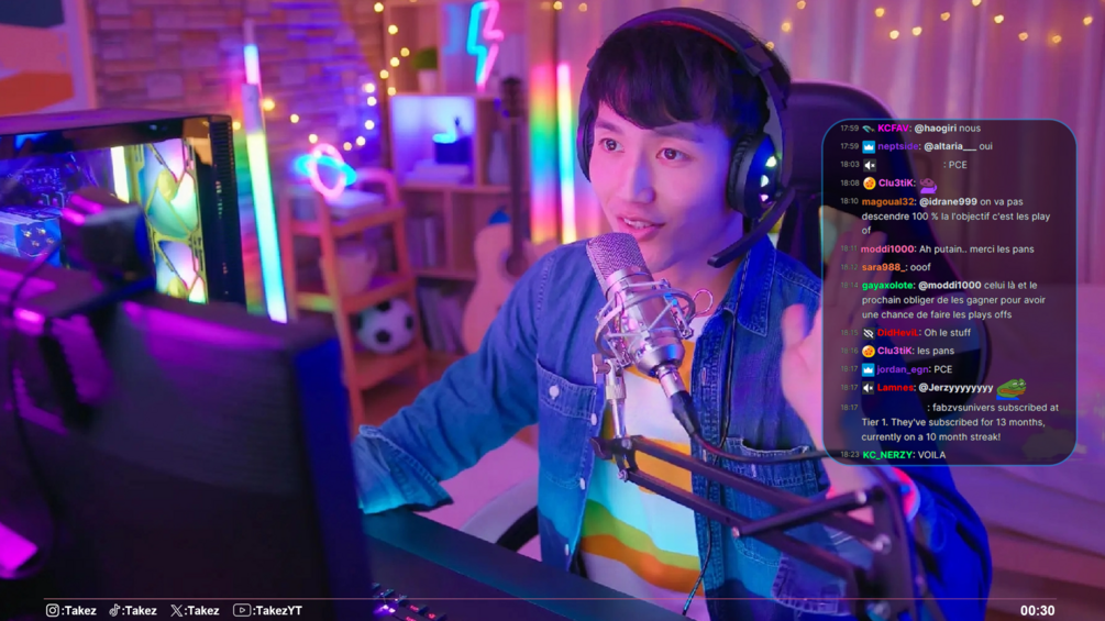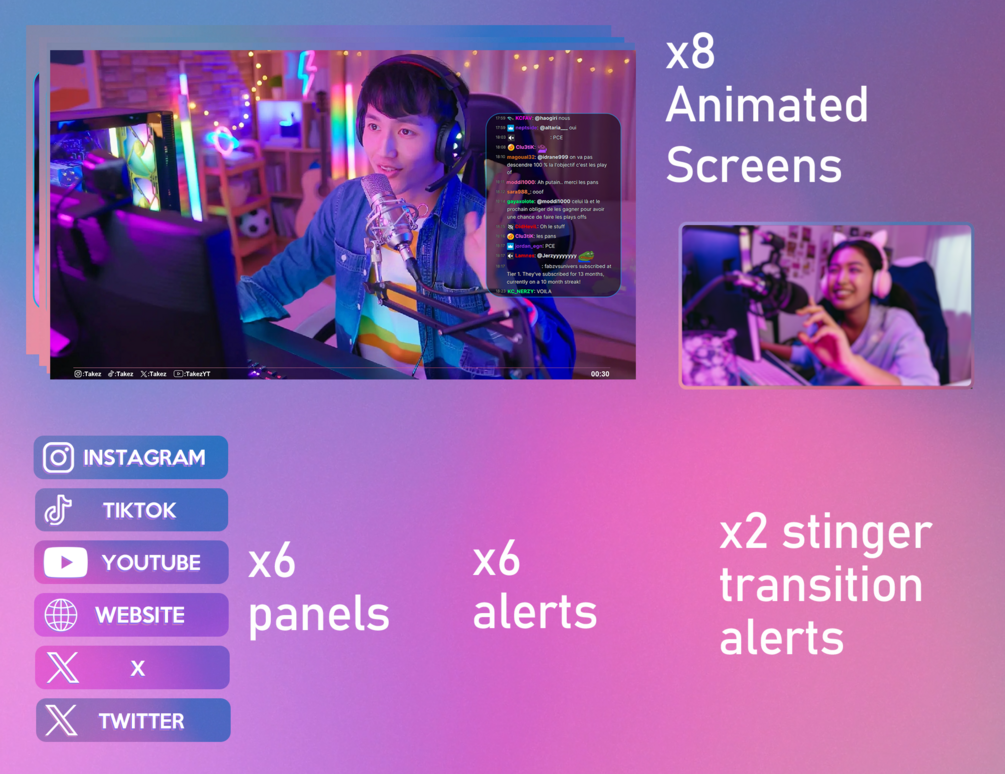 - 2 Main screens with social media,cam stroke or social media and chat box (all animated in .mov)